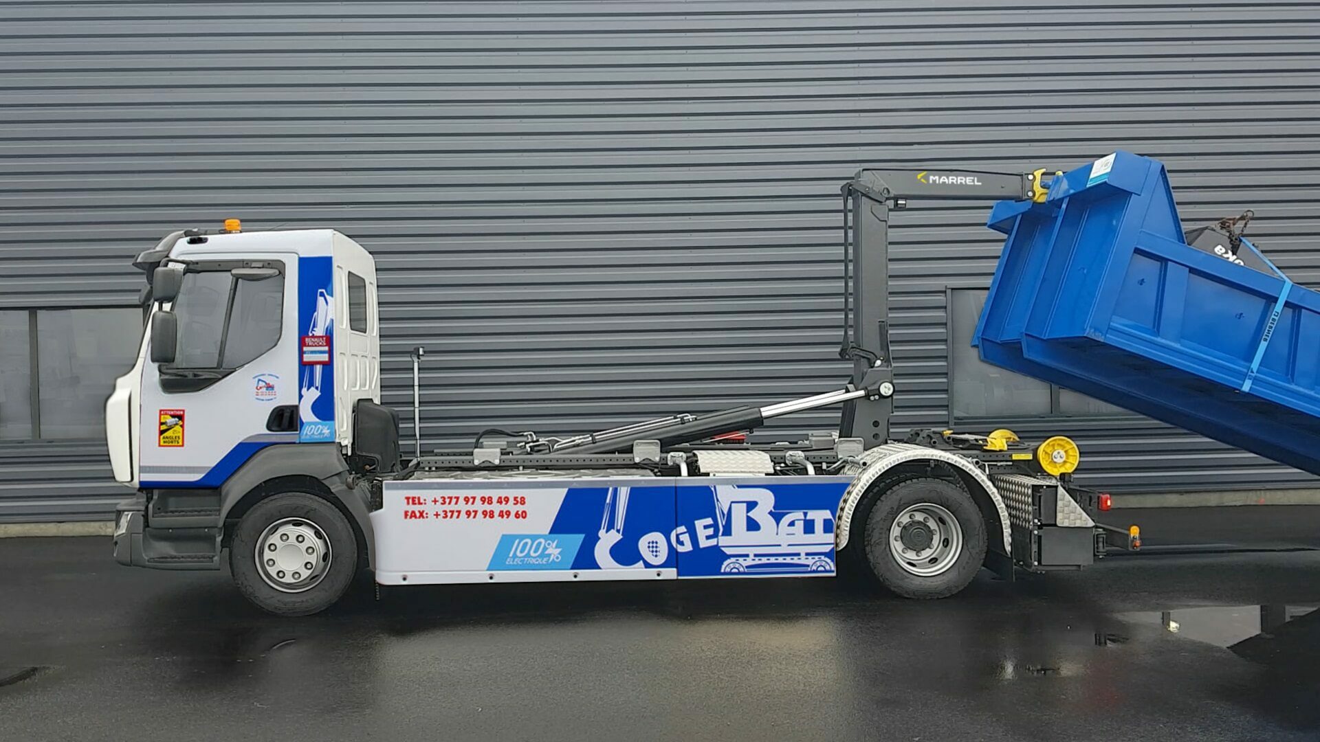 Première en France : Marrel adapte un bras Ampliroll sur un camion électrique